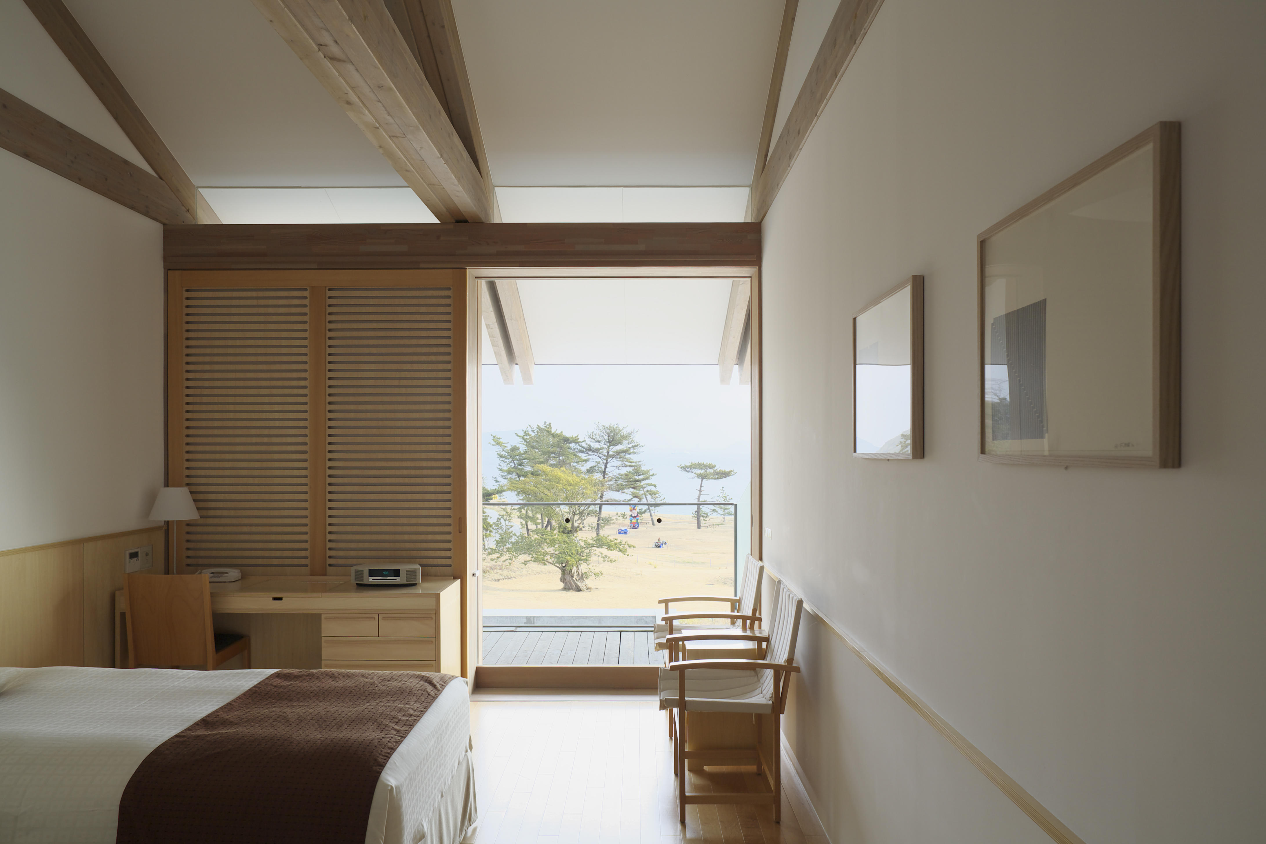 自然に溶け込むように構成された4棟の宿泊棟は、世界的に有名な建築家、安藤忠雄による設計です。部屋数65室という比較的小さなホテルですが、美術館とホテルが一体になった施設がある他、敷地内には沢山の現代アートが設置され、直島の自然の中で、美術鑑賞ができる場所として世界中から注目を浴びています。